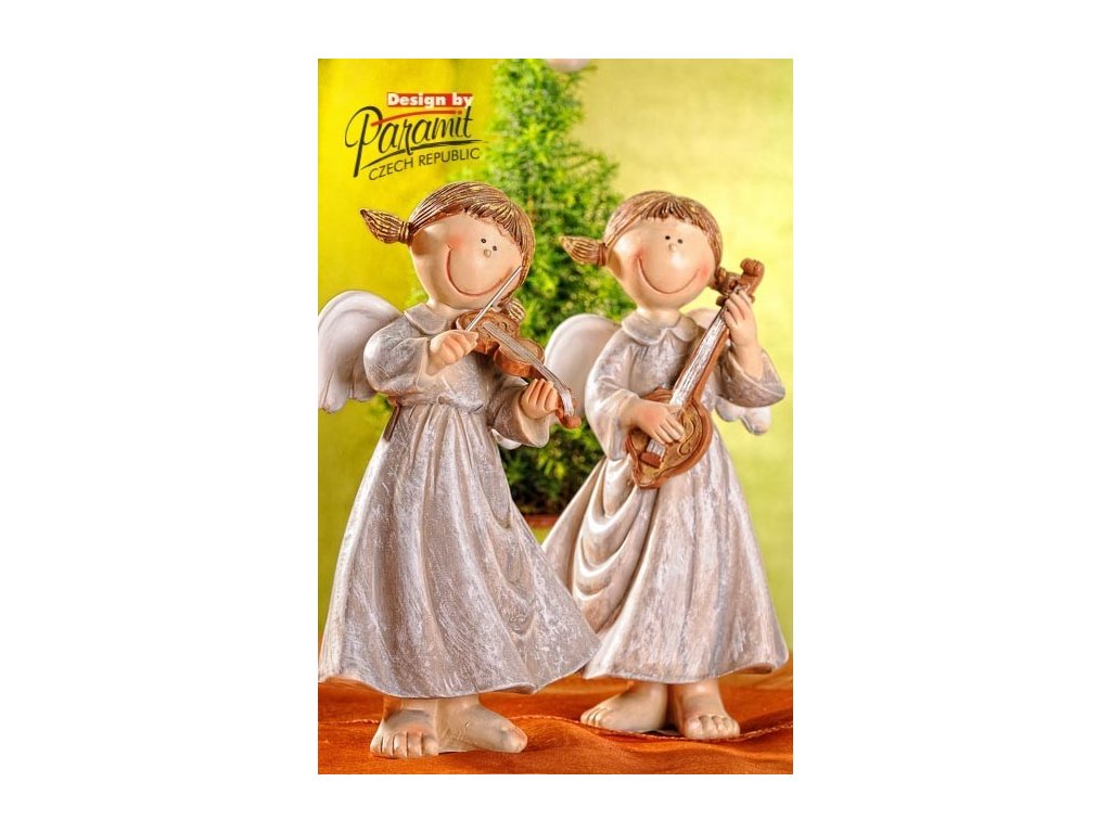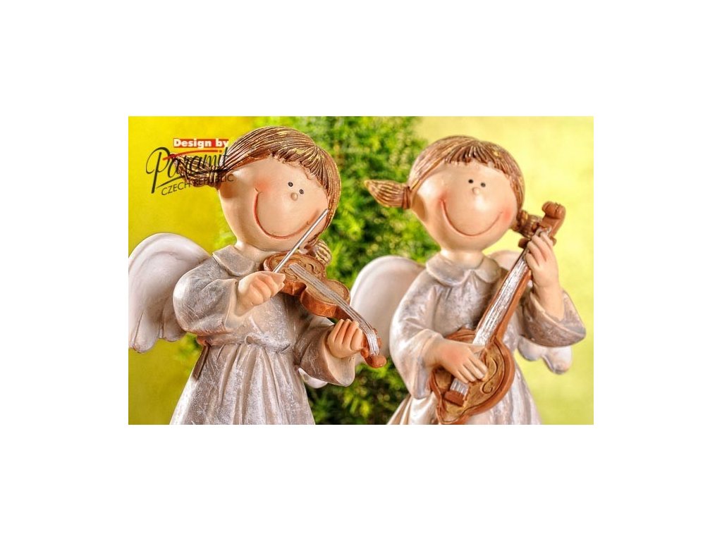 Figurka Anděl muzikant s housličkami a kytarou 22 cm