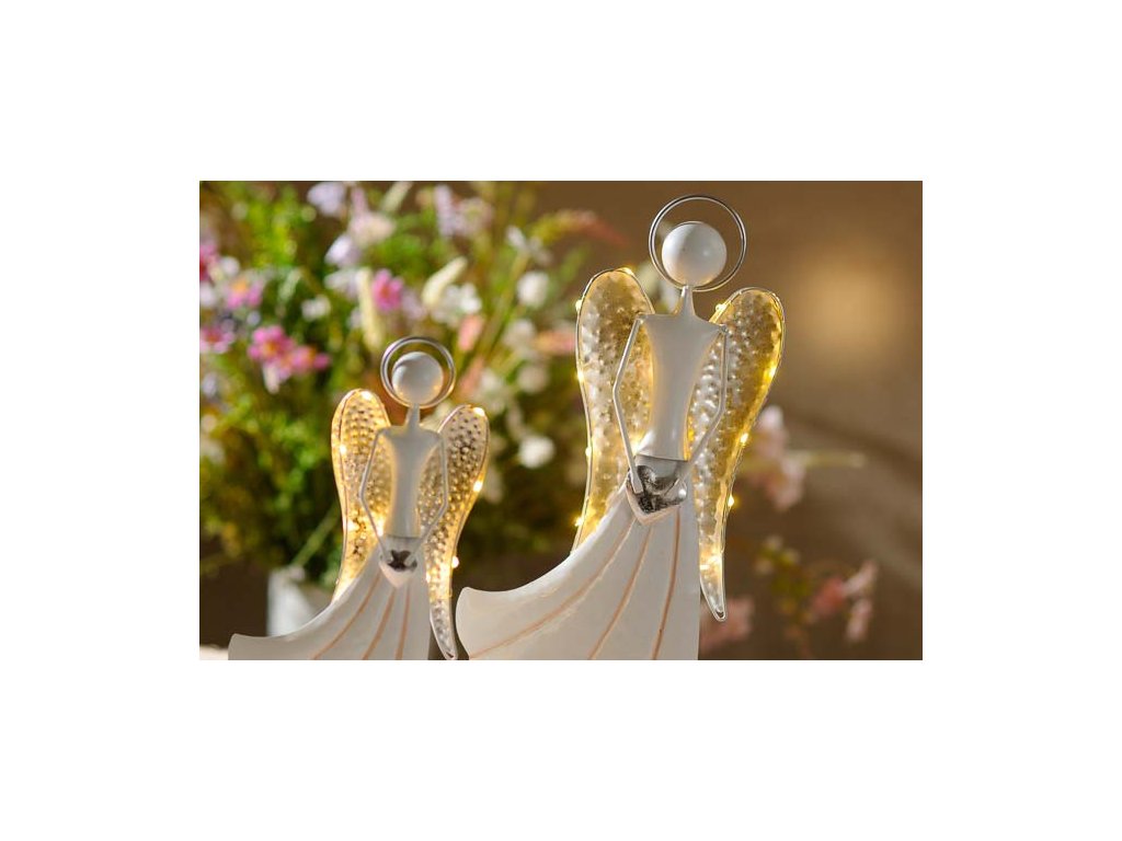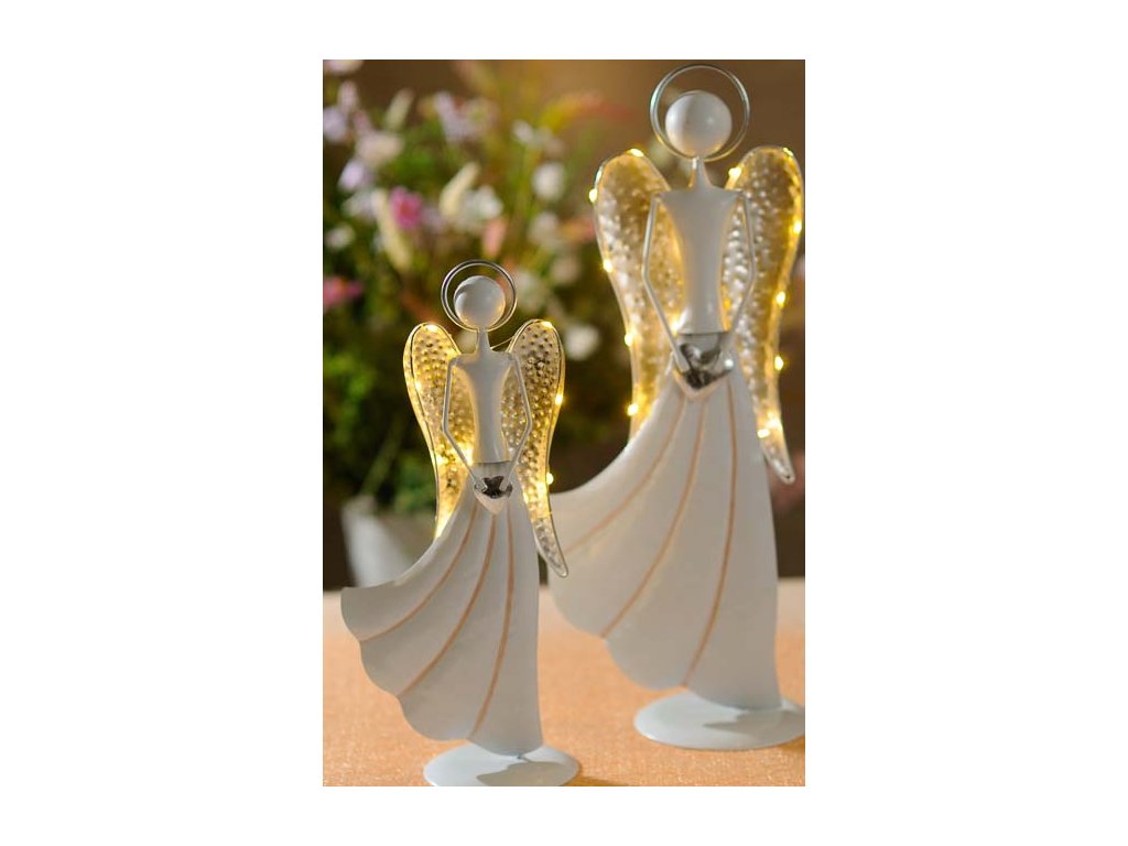 Rozkošný anděl IGOR s rozevlátou sukénkou o výšce 32 cm, je vyroben ručně z kovu a jeho povrch je opatřen bílou patinou. V rukou drží srdíčko. Má krásná velká křídla podél kterých vede jemný drátek se světýlky. Andílek IGOR svítí díky dvěma tužkovým AA bateriím.