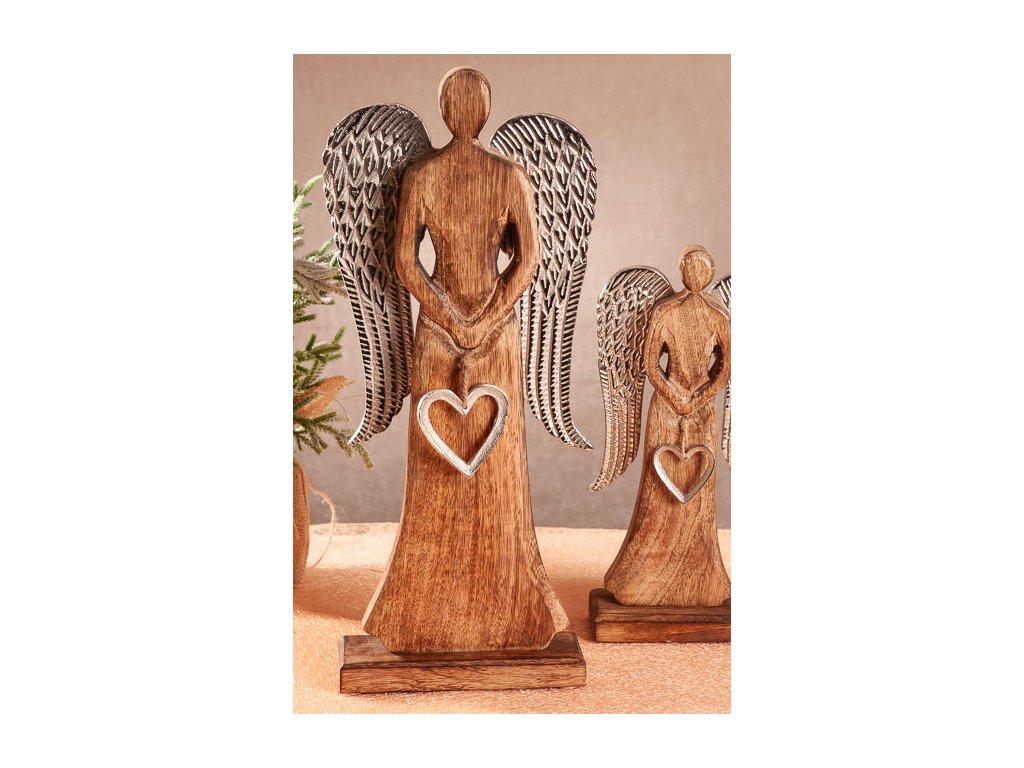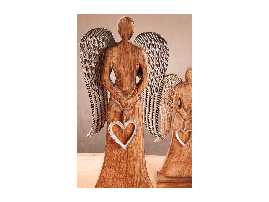 Tento dřevěný anděl má výšku 42 cm a je vyroben ze dřeva mangovníku, které je obzvláště pevné a velmi odolné. Snadno jej poznáte podle jeho teplého vzhledu, krásné barvy dřeva, charakteristické struktury vláken a skvěle zapadne do každého interiéru.
