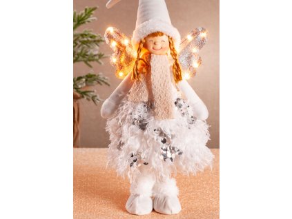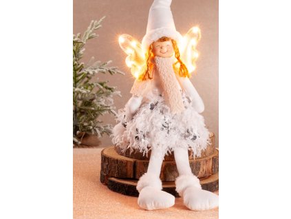 MARGOT panenka je zimní dekorace svítící a je určena k posazení. Panenka MARGOT má svítící křidélka a působí jako lampička, kterou je možné kdykoli zapnout a nebo vypnout. Na hlavě má červenou špičatou čepici s chlupatým lemem a kolem krku má omotanou bílou šálu. Její výška je 60 cm.