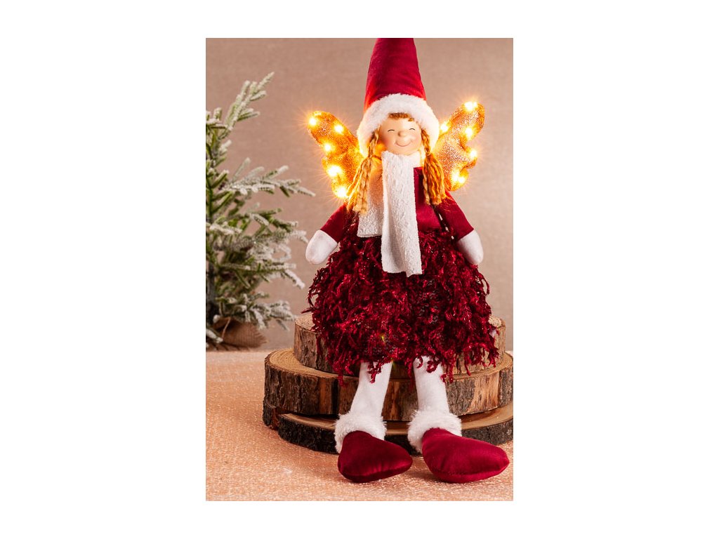 MARGOT panenka je zimní dekorace svítící a je určena k posazení. Panenka MARGOT má svítící křidélka a působí jako lampička, kterou je možné kdykoli zapnout a nebo vypnout. Na hlavě má červenou špičatou čepici s chlupatým lemem a kolem krku má omotanou bílou šálu. Její výška je 60 cm.