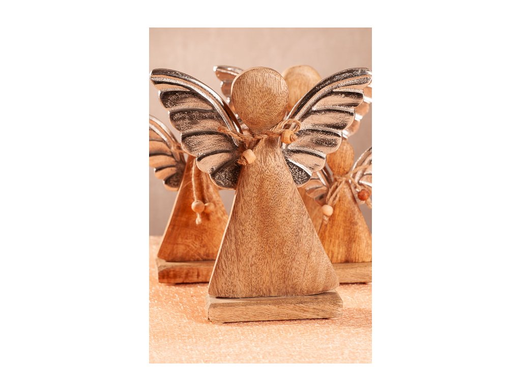Tento dřevěný andílek je vysoký 13 cm a je vyroben ze dřeva mangovníku, které je obzvláště pevné a velmi odolné. Snadno jej poznáte podle jeho teplého vzhledu, krásné barvy dřeva, charakteristické struktury vláken a skvěle zapadne do každého interiéru.