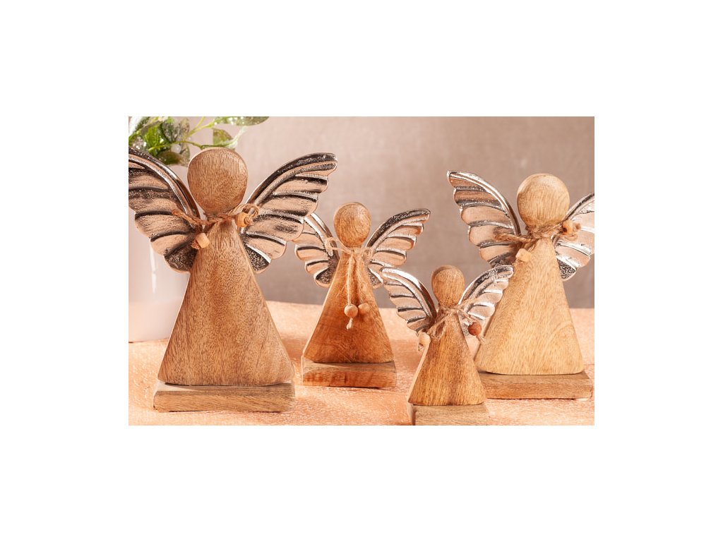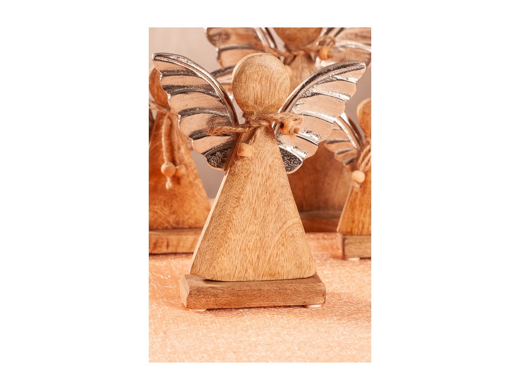 Tento dřevěný andílek je vysoký 20 cm a je vyroben ze dřeva mangovníku, které je obzvláště pevné a velmi odolné. Snadno jej poznáte podle jeho teplého vzhledu, krásné barvy dřeva, charakteristické struktury vláken a skvěle zapadne do každého interiéru.