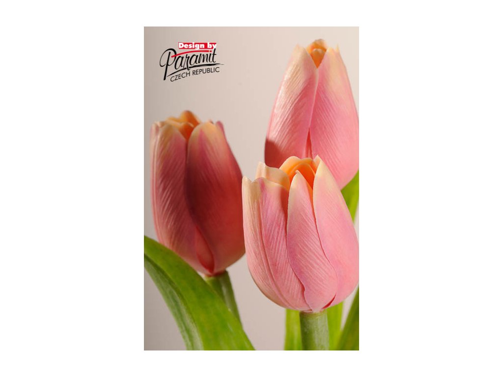 Aranžovací květina francouzského tulipánu ve tmavě broskvové barvě od české značky Paramit. Použitím umělého materiálu je dosaženo, že květina drží pořád stejný vzhled a nevadne. Tulipán obsahuje jeden květ a jeden list, je vysoký 40 cm.