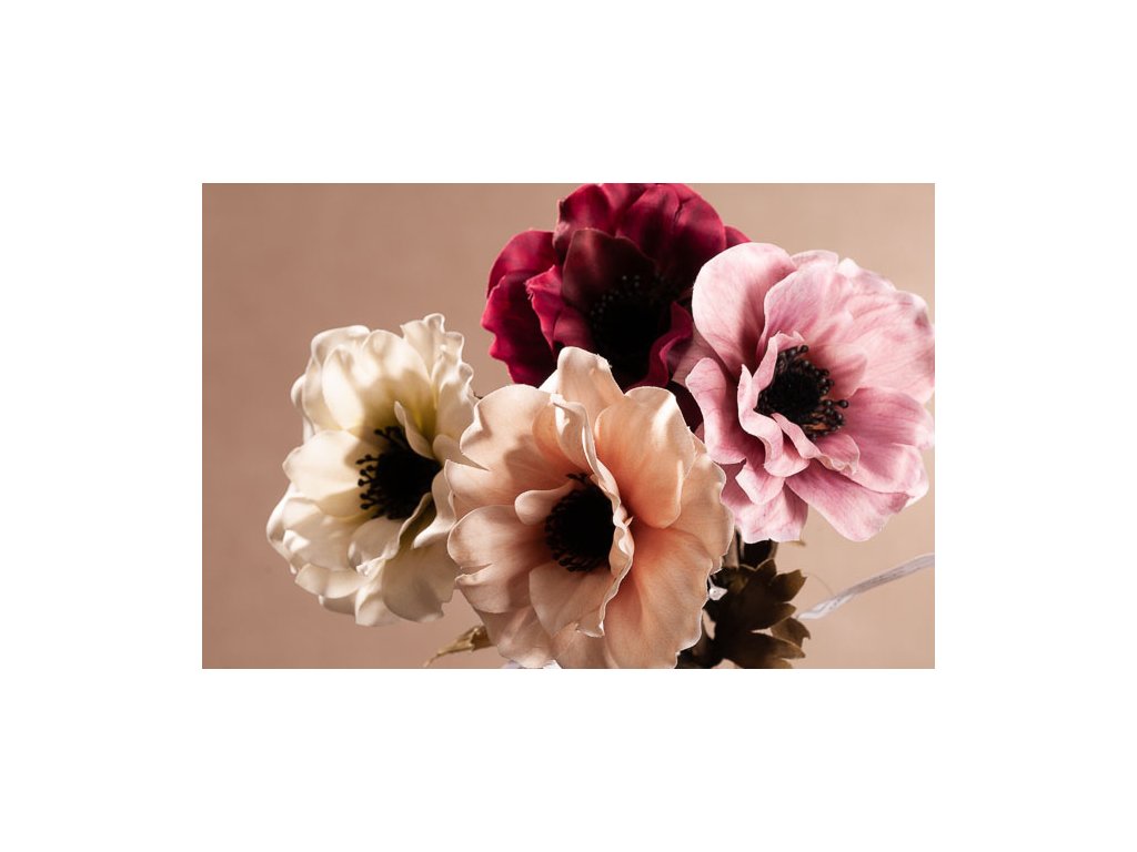Dekorační květinu DRY SINGLE ANEMONE si můžete vybrat v několika barvách, a jsou to: krémová, červená, růžová a bílá.