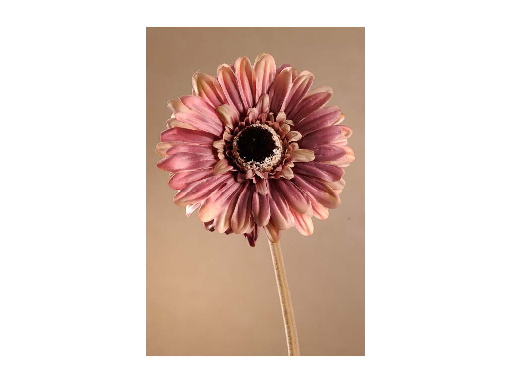 Květ růžové gerbery je v odstínech růžové, má působit jemně, něžně a romanticky a je velký cca 12 cm. Stonek je světle hnědé barvy, je takzvaně jemně "chlupatý" a působí jako sušená květina. Celkově však působí jemným a přirozeným dojmem.