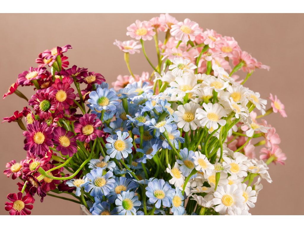 MINI DAISY je krásná umělá kytice sedmikrásek v modré barvě, výšky 27 cm od české značky Paramit z nové kolekce květin ART FLOWER, nově uvedené v roce 2023.