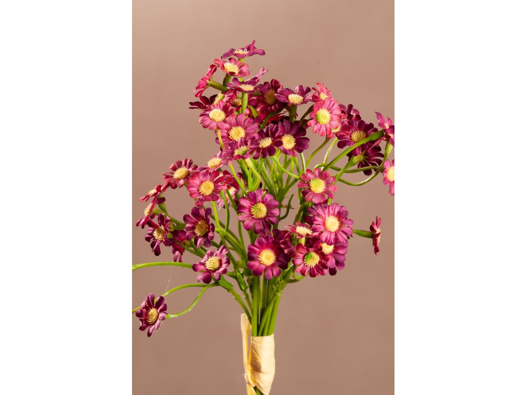 Umělá aranžovací květina MINI DAISY red má sytě vínově červené kvítky se žlutým středem a zelené stonky. Jako všechny ostatní dekorační rostliny od Paramitu je propracována opravdu věrně, vypadá jako živa a můžete si ji snadno splést s živou květinou.