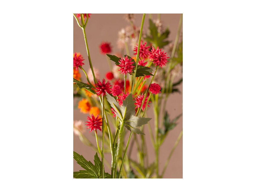 Umělá květina s malými bodláčky sytě růžové barvy. Stonek je dlouhý 68 cm a je na něm několik zelených listů. Její vzhled snadno zaměníte za živou květinu.