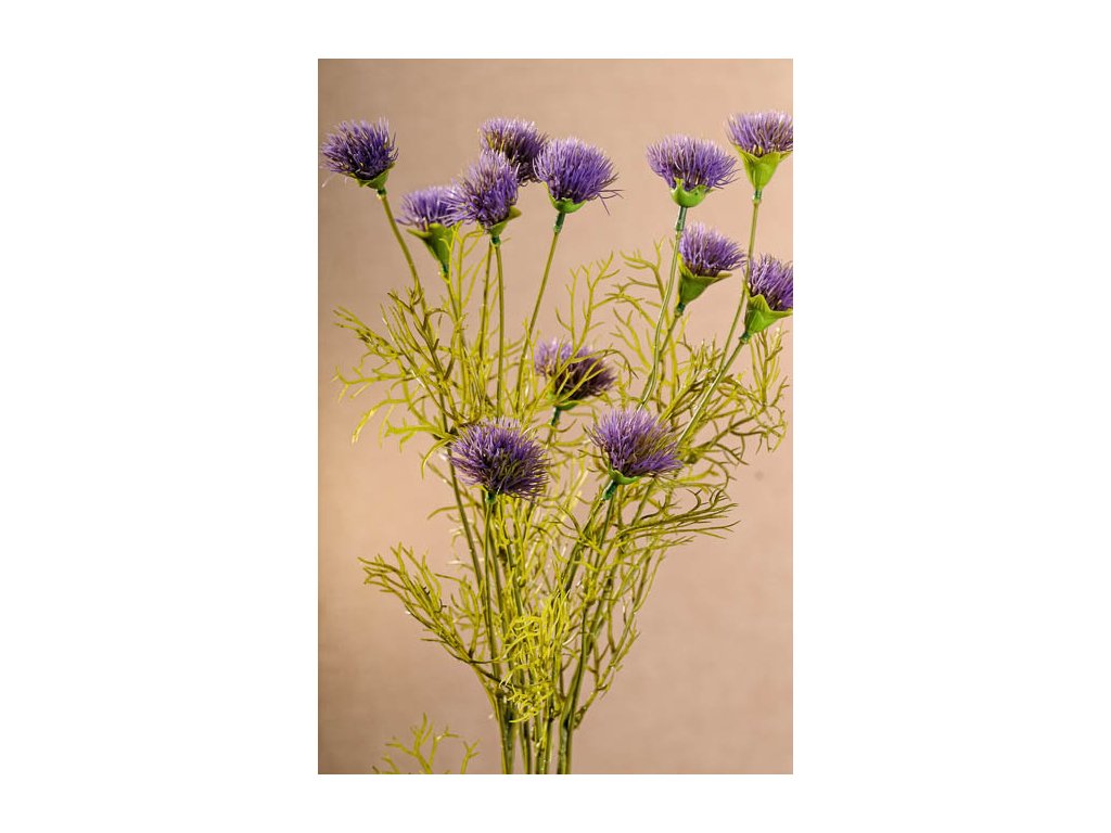 Okrasná dekorativní chrpa má 12 fialových květů. Celá je vyrobená z plastu, drží v trsu, který tvoří 3 stonky. Chrpa je vysoká 56 cm. Použitím umělého materiálu dosáhneme, že květiny drží tvar i barvu a dobře se udržují, stačí jemně otřít od prachu vlhkým hadrem. Můžete je také zkombinovat s jiným lučním kvítím, které máme v nabídce.