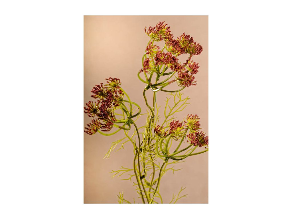 Okrasný kopr má čtyři květy červené barvy, je vyroben z plastu a je vysoký 80 cm. Použitím umělého materiálu dosáhneme, že květiny drží tvar i barvu a dobře se udržují, stačí jemně otřít od prachu vlhkým hadrem. Můžete je také zkombinovat s jiným lučním kvítím, které máme v nabídce.