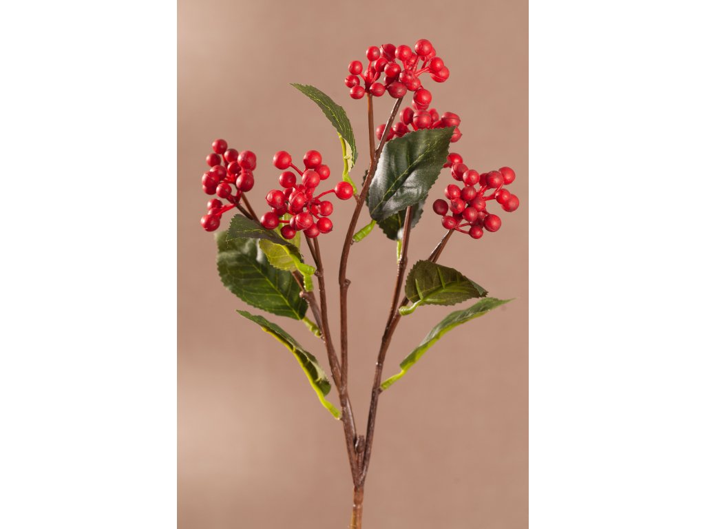 Dekorační květina WILD BERRY SPRAY red - výrazné červené bobulky výšky 53 cm od české značky Paramit patří do kolekce aranžovacích květin FLOWER ART - květiny s uměleckým vzhledem, která je navržena a vyrobena podle nejnovějších trendů, uvedena v roce 2023.