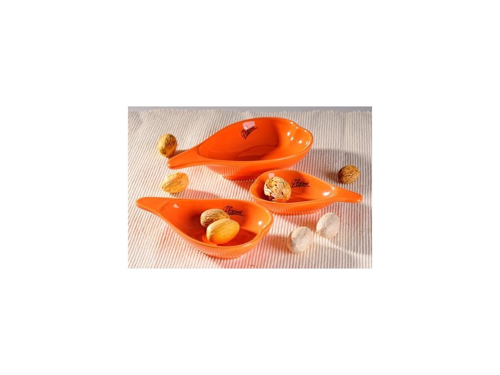Oranžová miska Lamella délky 18 cm má dvě využití. Je vhodná jako miska na omáčku nebo dip a nebo ji lze využít pro aranžování květin a svíček. Její tvar kopíruje tvar hrušky a na vašem stole vytvoří něco nového, neokoukaného.