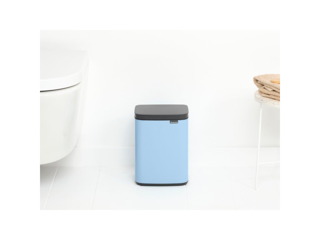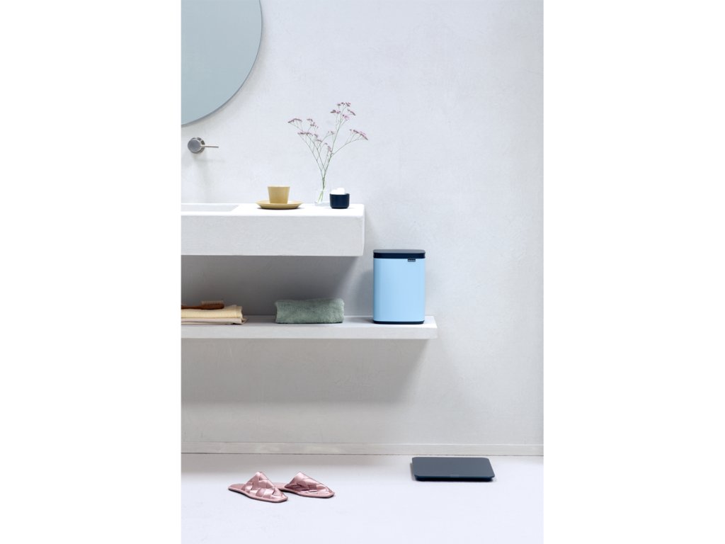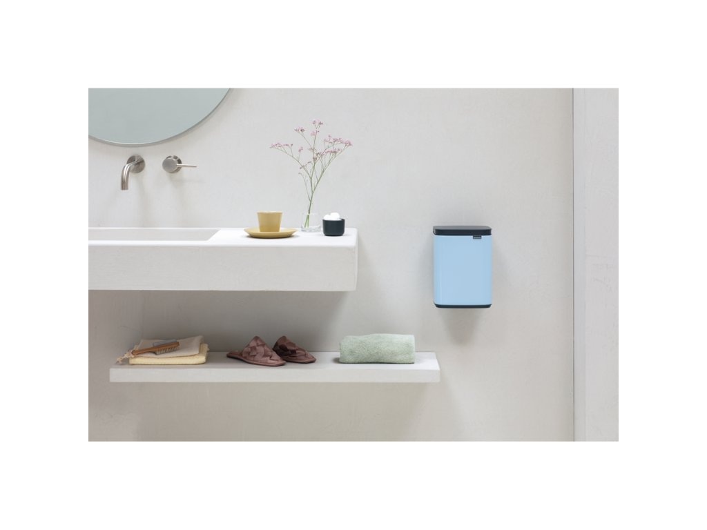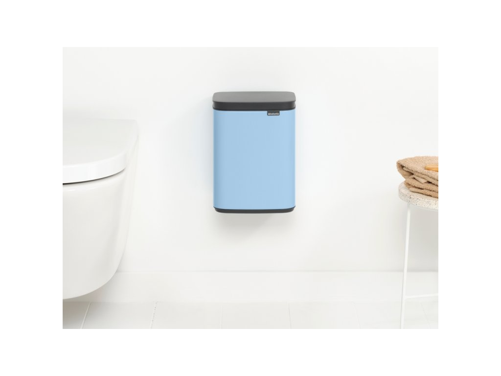 Úžasný nový Mini BO koš o objemu 4 l v krásné světle modré barvě vypadá jako stylový kus nábytku než jako odpadkový koš. Malý světle modrý koš na odpadky je vhodný do každé moderní domácnosti nebo kanceláře. Vleze se do rohu nebo ho můžete pověsit i na zeď.
