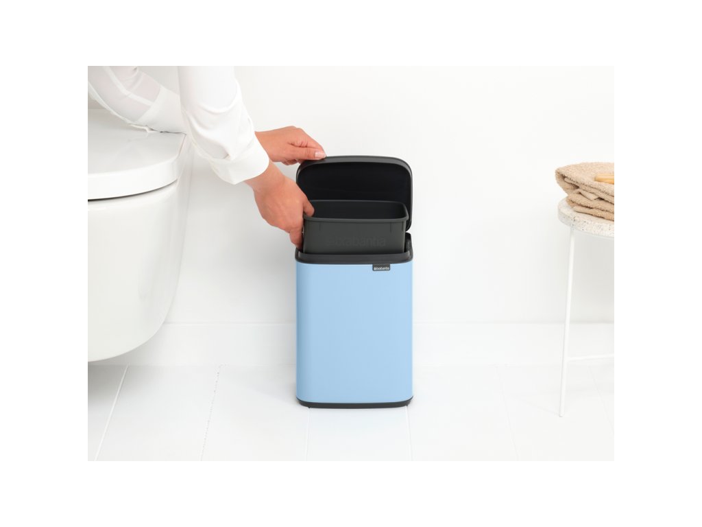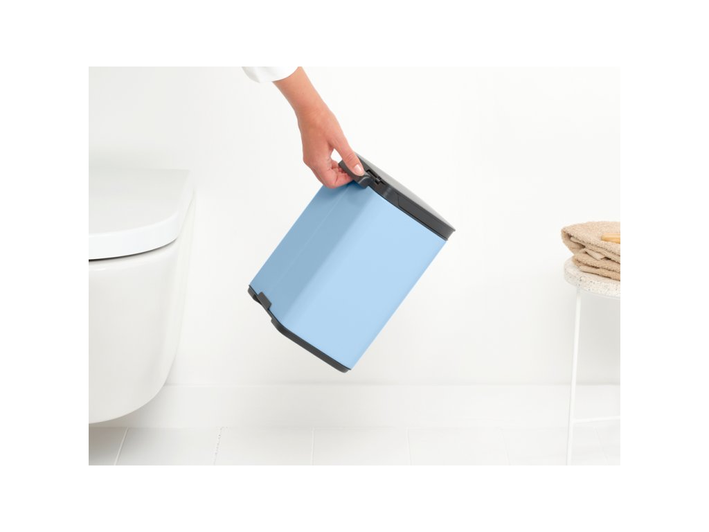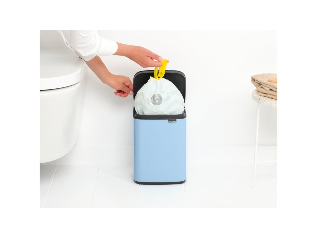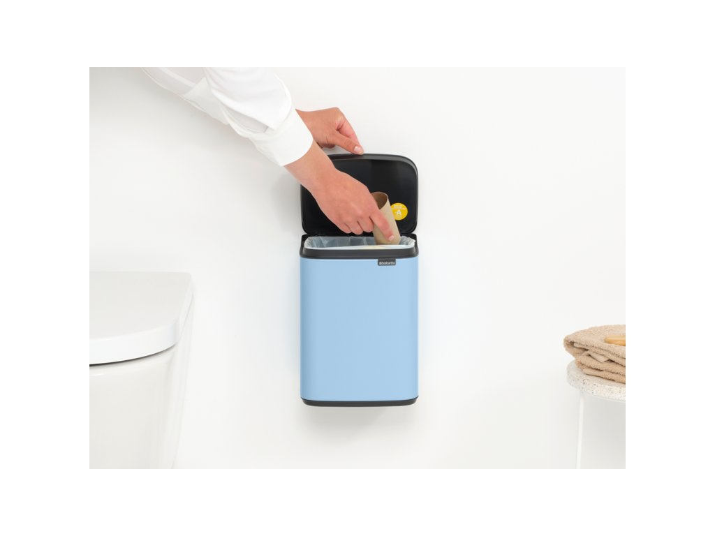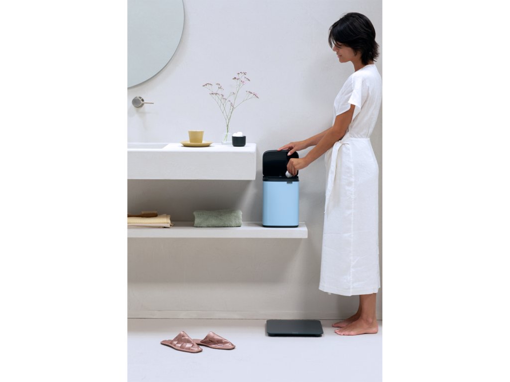 Úžasný nový Mini BO koš o objemu 4 l v krásné světle modré barvě vypadá jako stylový kus nábytku než jako odpadkový koš. Malý světle modrý koš na odpadky je vhodný do každé moderní domácnosti nebo kanceláře. Vleze se do rohu nebo ho můžete pověsit i na zeď.