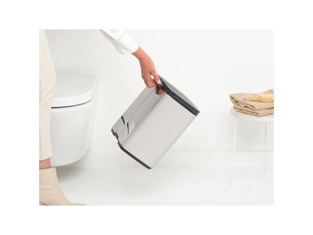 Koš šetří i místo, lze ho umístit ke zdi, do rohu místnosti nebo pomocí držáku připevnit na stěnu. Úchytka na stěnu, připevňovací materiál a montážní pokyny zahrnuty Koš má protiskluzové dno, nehrozí poškrábání nábytku. Zdarma jsou součástí balení balení jsou speciální sáčky vhodné pouze pro odpadkový koš BO, protože okraj sáčku zůstává ukrytý pod víkem koše.