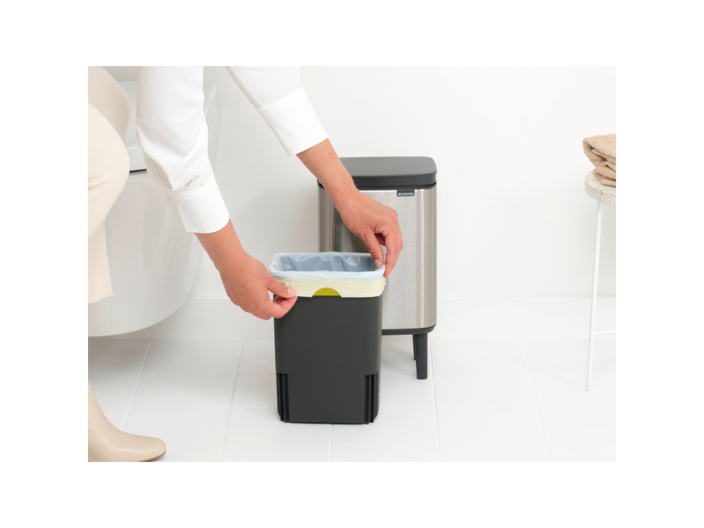 Zdarma jsou přiloženy odpadkové pytle PERFECTFIT. Jsou vhodné pro odpadkový koš BO, protože okraj zůstává ukrytý pod víkem koše.