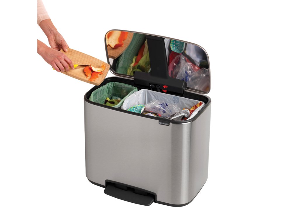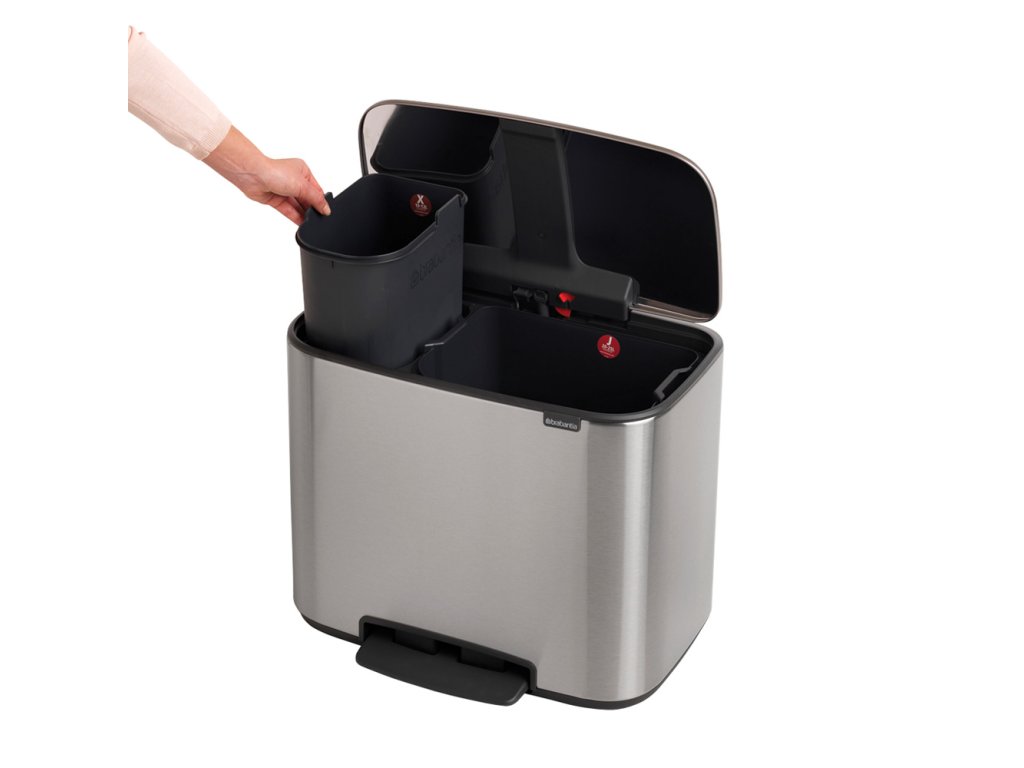 Inovace v ukládání odpadu pro ty, jež myslí na životní prostředí s BO košem na tříděný odpad v provedení matná ocel FPP (povrch odolný otiskům prstů) se dvěmi nádobami - 1x 11 l a 1x 23 l od výrobce Brabantia.