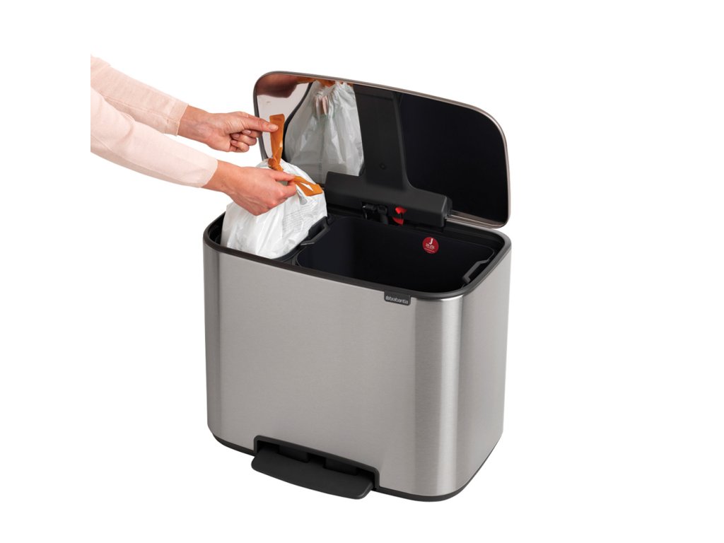 Zdarma jsou součástí balení speciální odpadkové sáčky vhodné pouze pro odpadkový koš BO, protože okraj sáčku zůstává ukrytý pod víkem koše.
