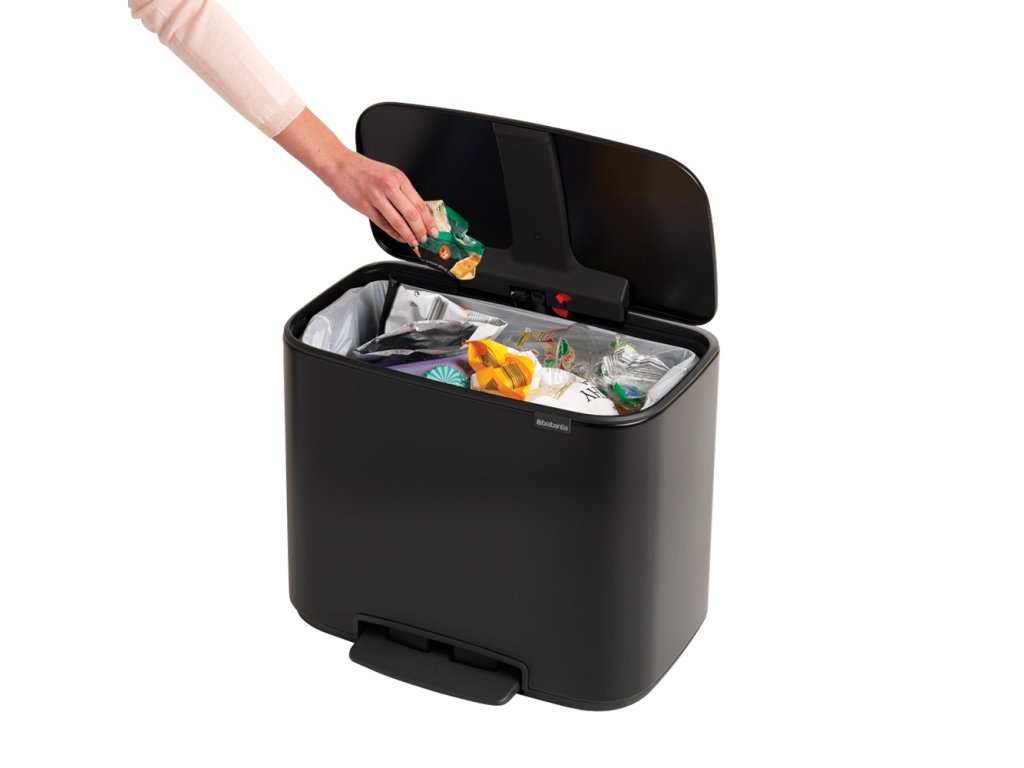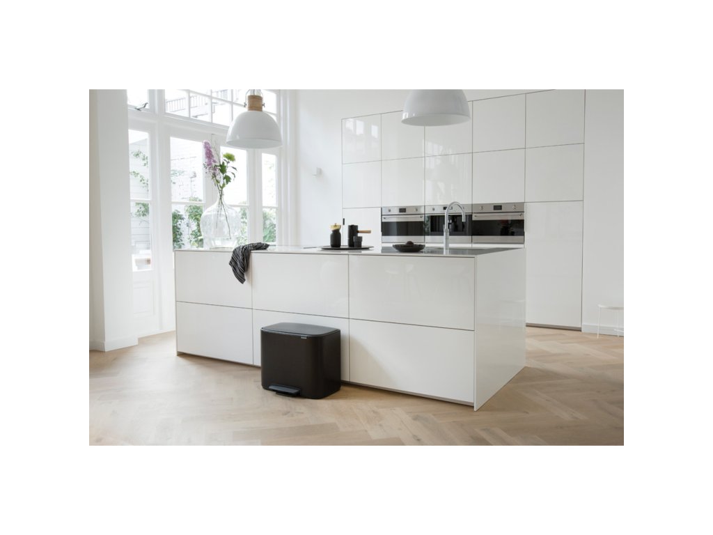 BO odpadkový pedálový koš s dostatkem kapacity v matné černé barvě o objemu 36 litrů od výrobce Brabantia perfektně přilne ke zdi a šetří tak často nedostatek míta. Tento nadčasový doplněk kombinuje krásný design s dostatečným prostorem na váš odpad, je vhodný do každé moderní domácnosti nebo kanceláře. Podlahu před poškozením chrání protiskluzový povrch.