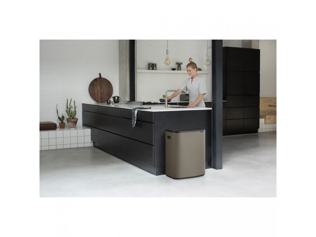 Tento nadčasový doplněk kombinuje krásný design se všemi funkcemi pro snadné oddělení odpadu. Je vhodný do každé moderní domácnosti nebo kanceláře. Dodává se se dvěmi odnímatelnými nádobami pro dva druhy odpadu. Jedinečný uzávěr soft-touch umožňuje snadnou a lehkou práci na dotek ruky. Odpadkový koš má vnitřní plastové vědro, což umožňuje snadné čištění.