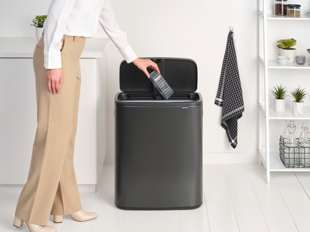 BO TOUCH BIN odpadkový koš je dotykový koš na odpadky, s objemem 60 l v nové šedé barvě, který je dostatečně velký pro vaši domácnost, kancelář i halu. Je vybaven vyjímatelnou plastovou nádobou a integrovanými úchyty. Perfektně se hodí ke stěně a je také velmi prostorově úsporný. A jeho soft-touch otevírání umožňuje snadné a lehké ovládání pouhým dotykem ruky.