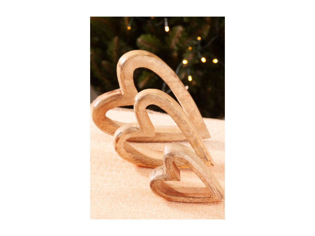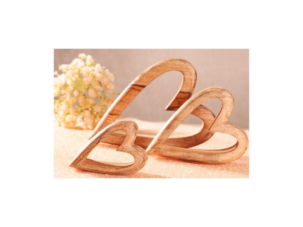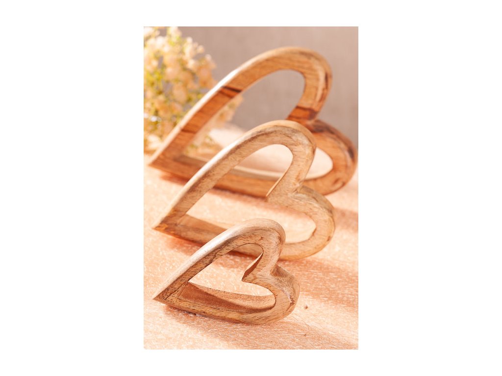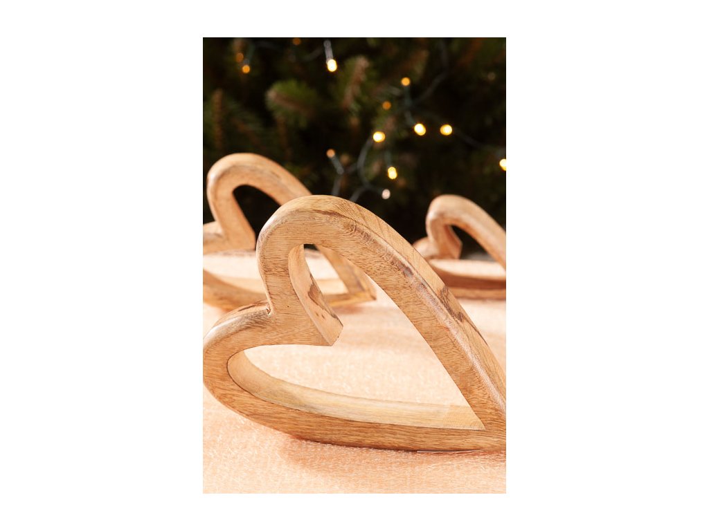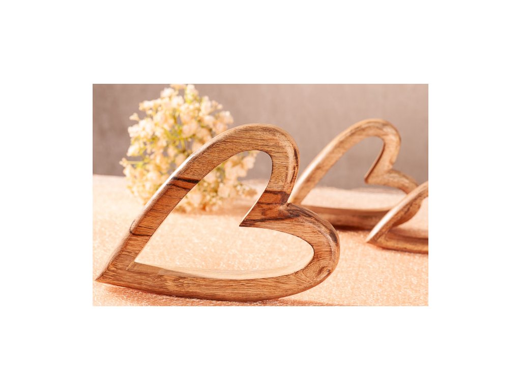 Toto dřevěné srdce má výšku 20 cm a je vyrobeno ze dřeva mangovníku, které je obzvláště pevné a velmi odolné. Snadno jej poznáte podle jeho teplého vzhledu, krásné barvy dřeva, charakteristické struktury vláken a skvěle zapadne do každého interiéru.