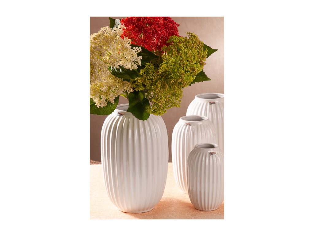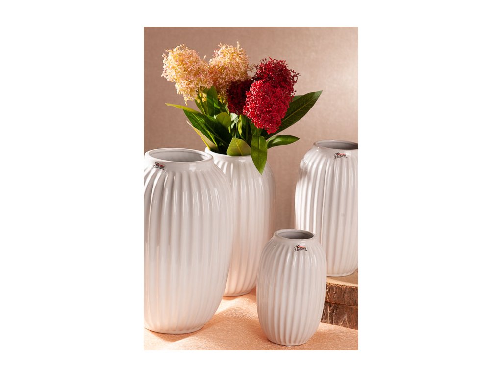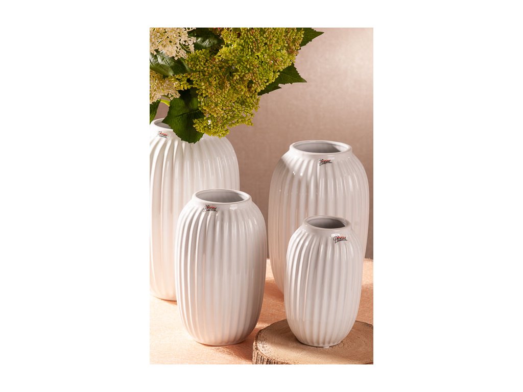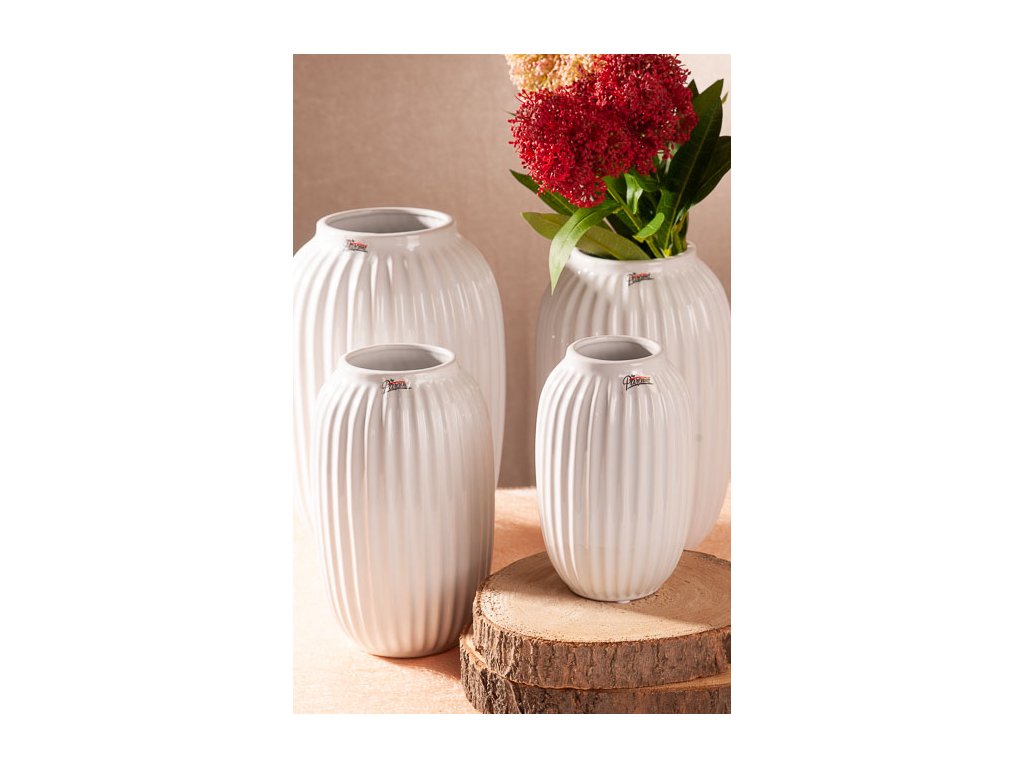 VROUBEK vysoká váza v krásné bílé barvě s originálním vroubkovým dekorem výšky 24 cm od špičkové české značky Paramit.