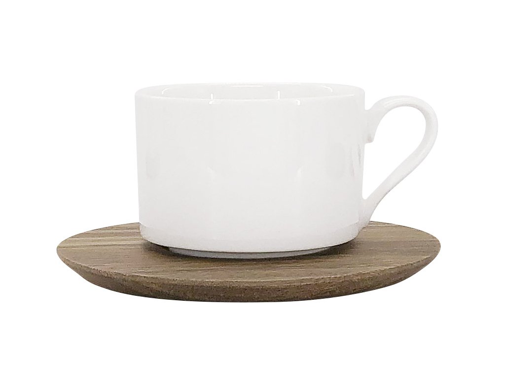 PIPE Šálek 250 ml s dřevěným podšálkem bílý
