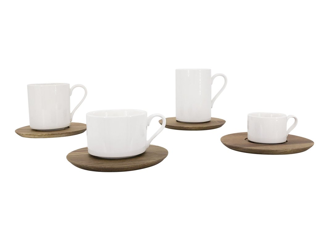 Bílý šálek PIPE na kávu, čaj nebo kakao o objemu 250 ml je doplněný ručně vyráběným dřevěným podšálkem. Tento typ hrnků je velmi oblíbený kvůli svému tvaru a stabilnosti. A díky kvalitě porcelánu, ze kterého je vyroben, je nepropustný a můžete ho používat v myčce i mikrovlnné troubě.