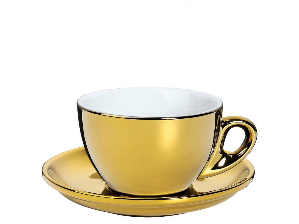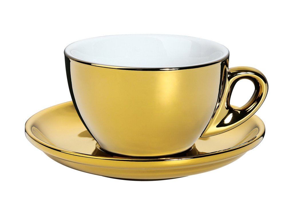 ROMA Zlatýý porcelánový šálek na espresso s podšálkem je vyroben z vysoce kvalitního silnostěnného porcelánu, který udrží vaši kávu déle horkou. Objem 100 ml.