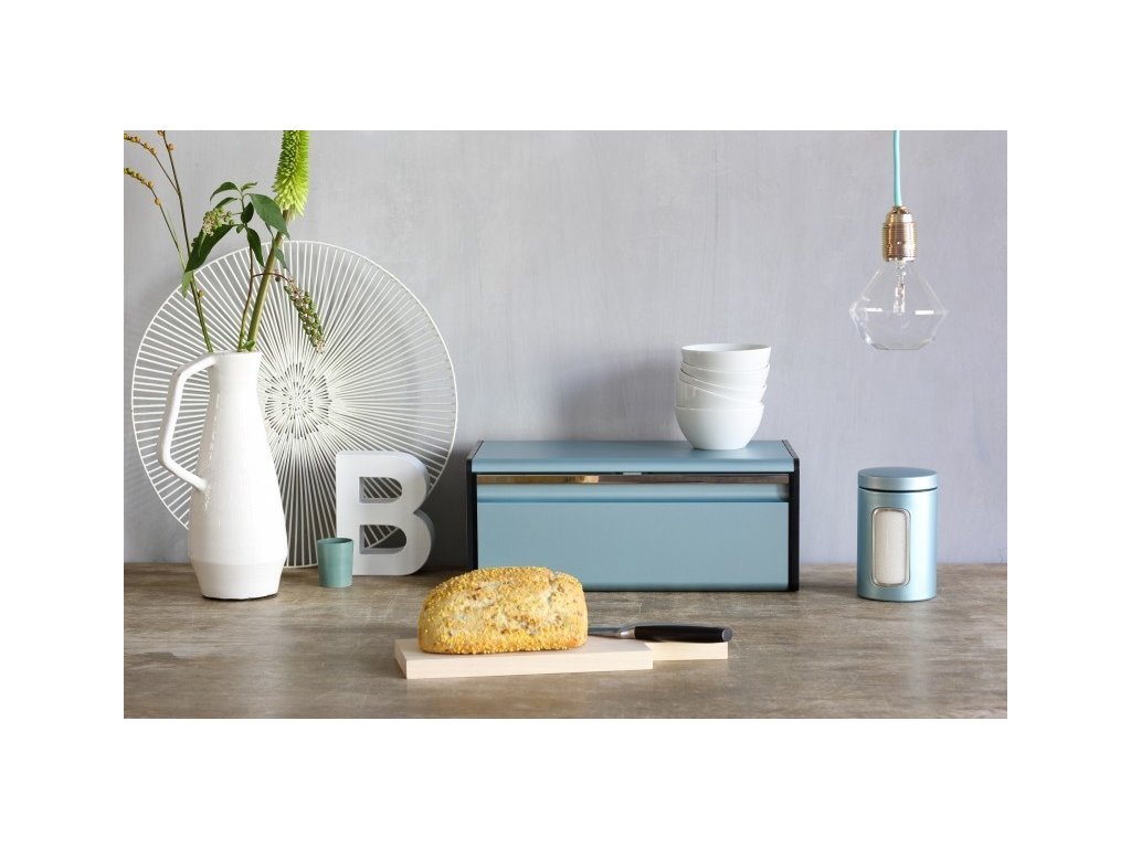 Chlebník Fall Front v krásné metalické mátové barvě zaručuje díky svému designu maximální úsporu místa v kuchyni. Pojme veškeré množství pečiva, které potřebujete, ale zároveň zabere minimum místa v kuchyni. Je vyroben z odolného materiálu k uchovávání chleba a dalšího pečiva. Pro otevření chlebníku není potřeba další prostor navíc.