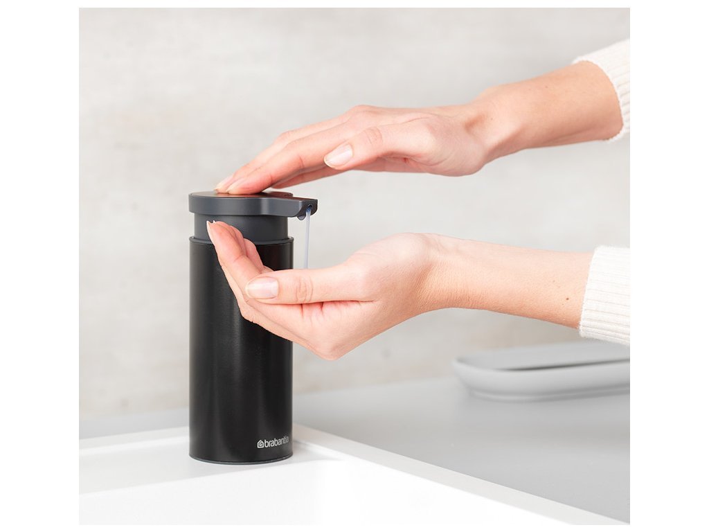 PROFILE Dávkovač mýdla, saponátu nebo i šampónu s kvalitním zpracováním odolným proti korozi o rozměru 16,5x9,5x6,5 cm, objemu 200 ml a matné černé barvě z kolekce koupelnových doplňků PROFILE od Brabantia.