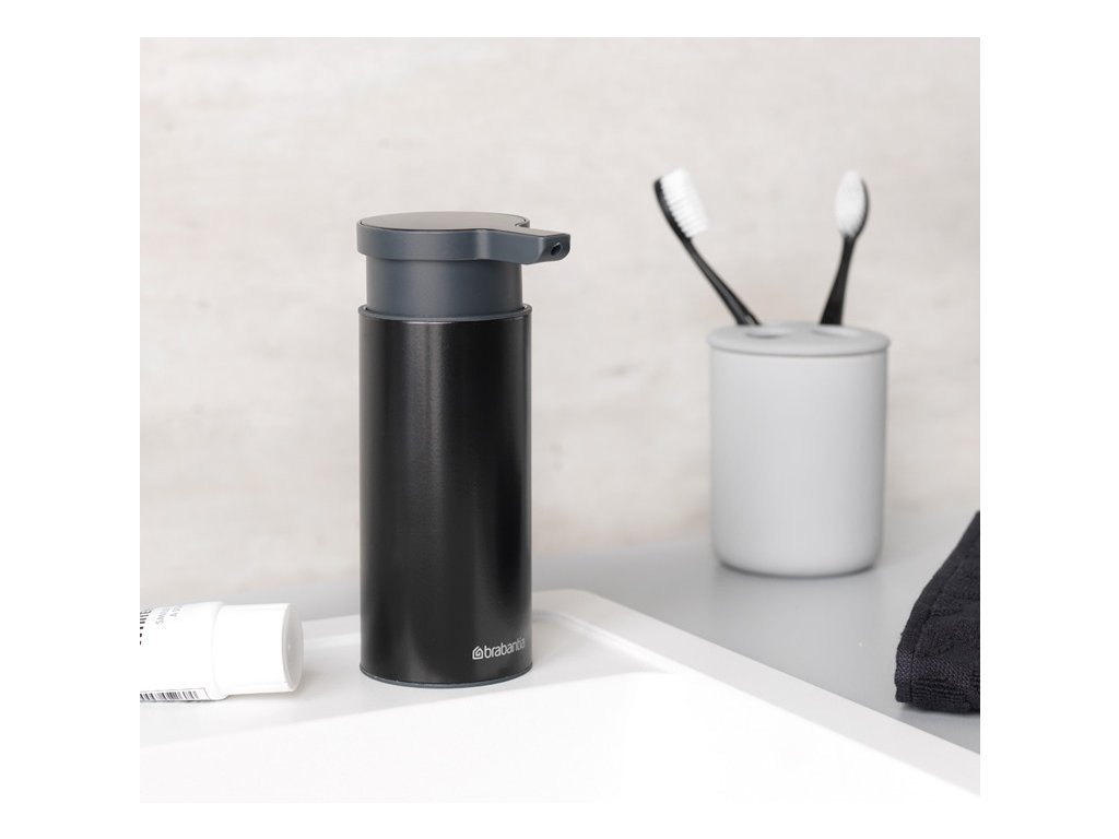 RENEW Dávkovač mýdla a saponátu o objemu 250 ml z kvalitního plastu o rozměru 14,3x9,3x7,6 cm v tmavě šedé barvě od holandské značky Brabantia.