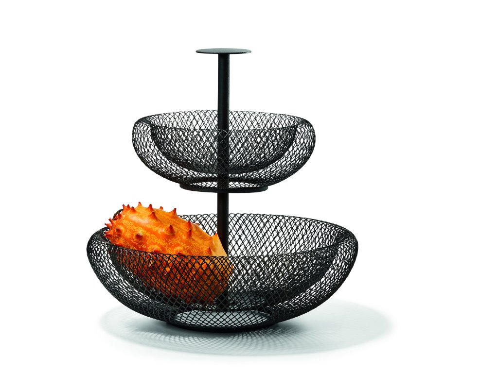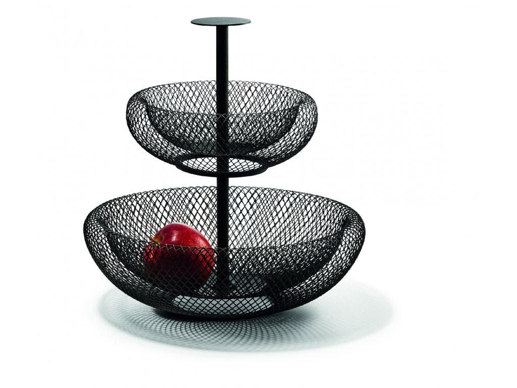 Přestože design etažéru MESH o průměru 29 cm a výšky 31 cm je opravdovým šampiónem v designu těžké váhy, samotný etažér MESH prakticky nic neváží. Jedinečný design etažéru je vhodný na ovoce, ořechy nebo na drobnosti denní potřeby. Tento designový etažér z ohýbaného a lakovaného drátu je vzdušná a lehká.