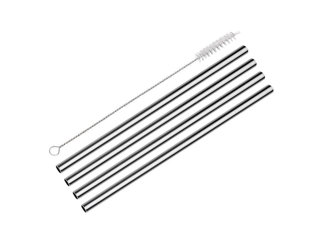 STEEL GRANDE Rovná nerezová brčka 4 ks s čistícím kartáčkem