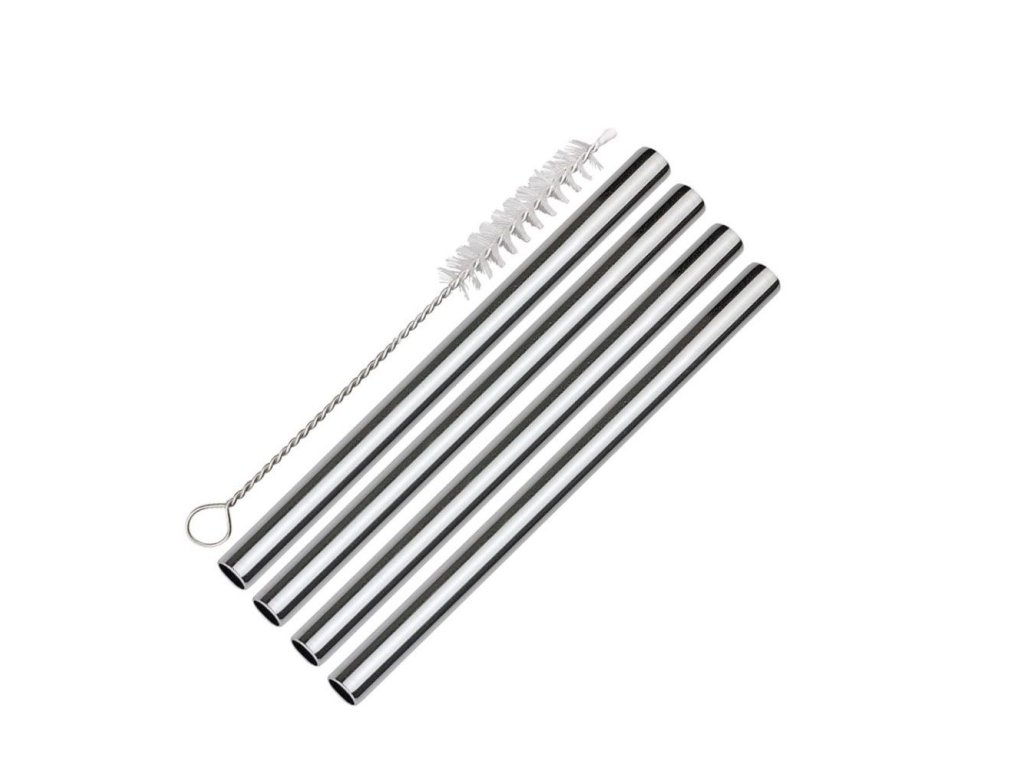 STEEL PICCOLO Rovná nerezová brčka 4 ks s čistícím kartáčkem