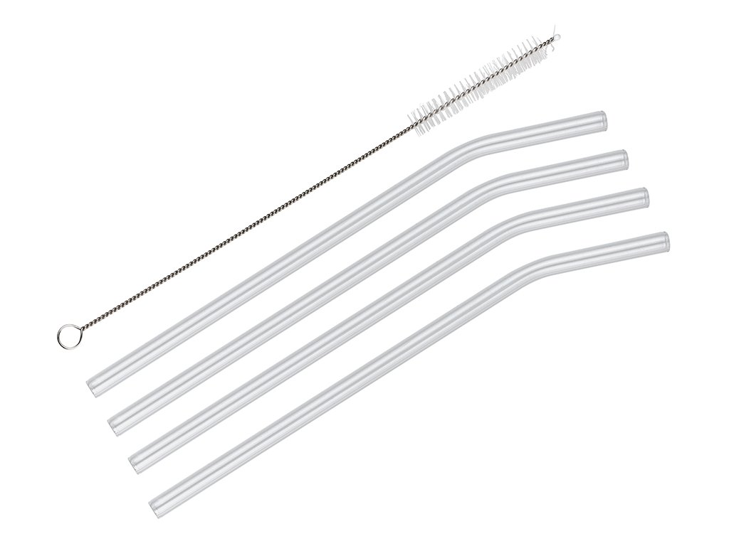 VETRO zahnutá skleněná brčka 4 ks s čistícím kartáčkem