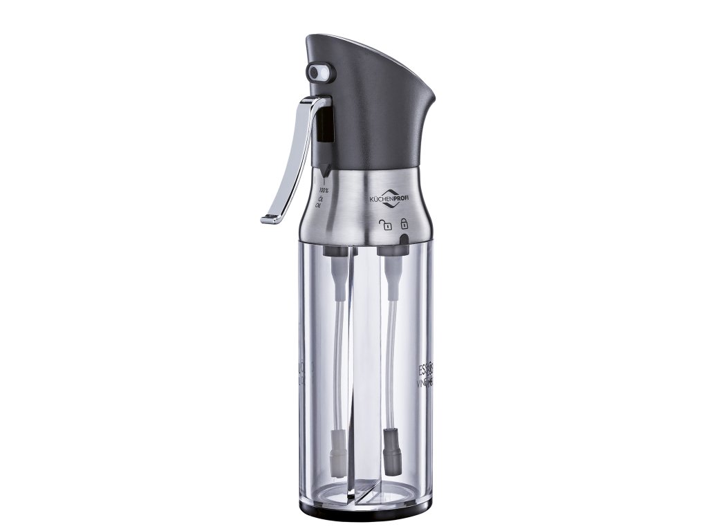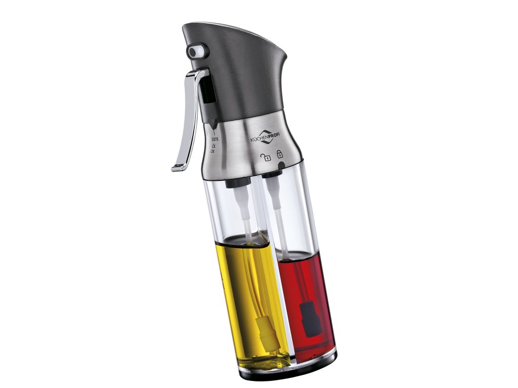 SIENA Rozprašovač oleje i octu v jednom od německé značky Küchenprofi. Má dvě komory pro současné dávkování octa a oleje a snadno si můžete upravit poměr míchání. Plnění dávkovače je díky velkému otvoru stejně jednoduché. Obě komory můžete také použít samostatně k vylepšení těstovin, ryb nebo masových pokrmů. Vždy se můžete spolehnout na ekonomické a přesné dávkování octa a oleje.