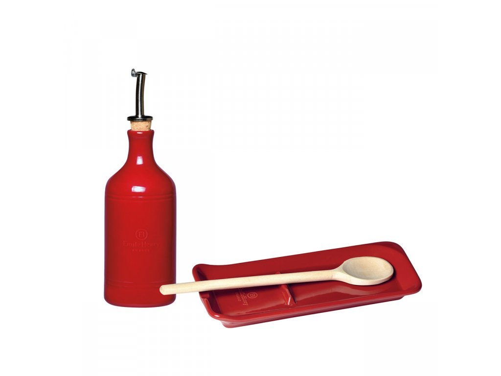 Dárková sada keramické dózy na olej o objemu 0,45 l a odkládací tácek na vařečky nebo lžíce v krásné granátové barvě je perfektním dárkem pro vaše nejbližší. A nyní za super akční cenu.