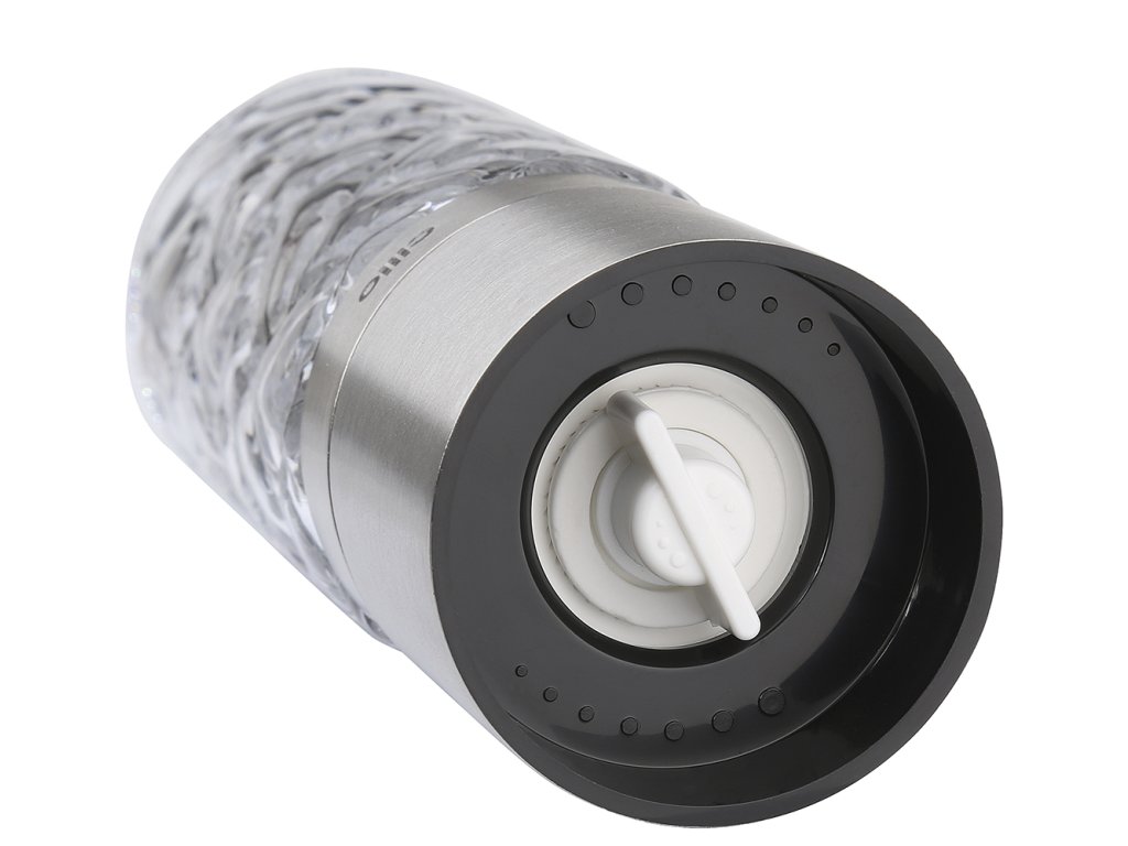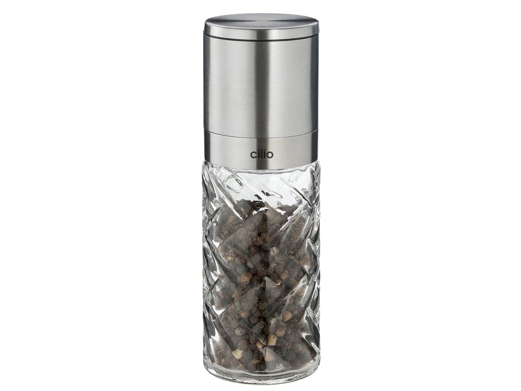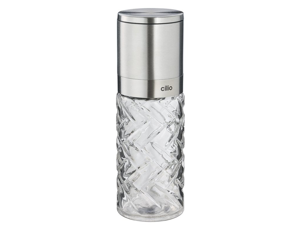 Skleněný mlýnek na pepř nebo sůl CRISTALLO od Cilio v nerezovém provedení je extra tvrdý a odolný vůči korozi. Mlýnek je dodáván neplněný a je vhodný na pepř i sůl, Úroveň mletí můžete snadno plynule nastavit na spodní části mlýnku. Mlýnek na sůl/pepř CRISTALLO má krásné skleněné třpytivé tělo, nerezové víko a kvalitní keramický mlecí mechanismus. Díky stylovému a nadčasovému designu upoutá pozornost na každém stole. Záruka mlecích mechanismů mlýnků této špičkové značky je zvýšena na 25 let.