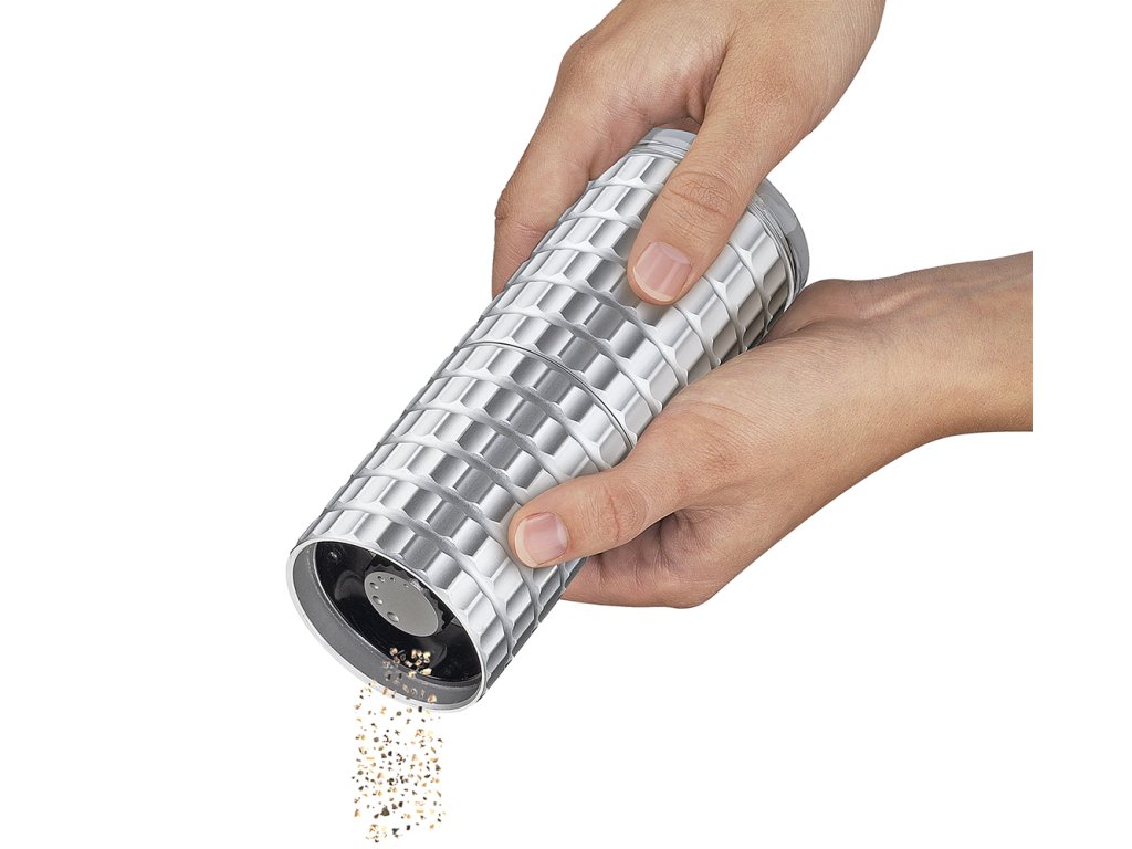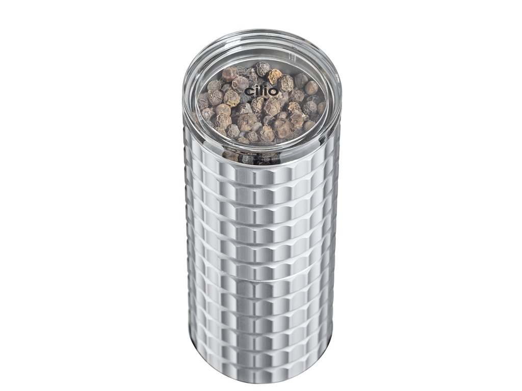 Stříbrný mlýnek na pepř nebo sůl PISA od Cilio je extra tvrdý a odolný vůči korozi. Mlýnek je dodáván neplněný a je vhodný na pepř i sůl, ale také na sušené bylinky. Úroveň mletí můžete snadno plynule nastavit. Mlýnek na sůl/pepř PISA je vyroben z vysoce kvalitního plastu a hliníku a má kvalitní keramický mlecí mechanismus. Díky elegantnímu designu upoutá pozornost na každém stole. Záruka mlecích mechanismů mlýnků této špičkové značky je zvýšena na 25 let.