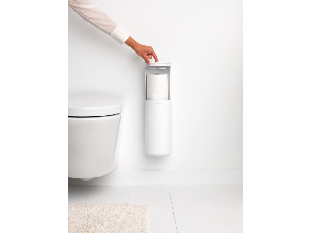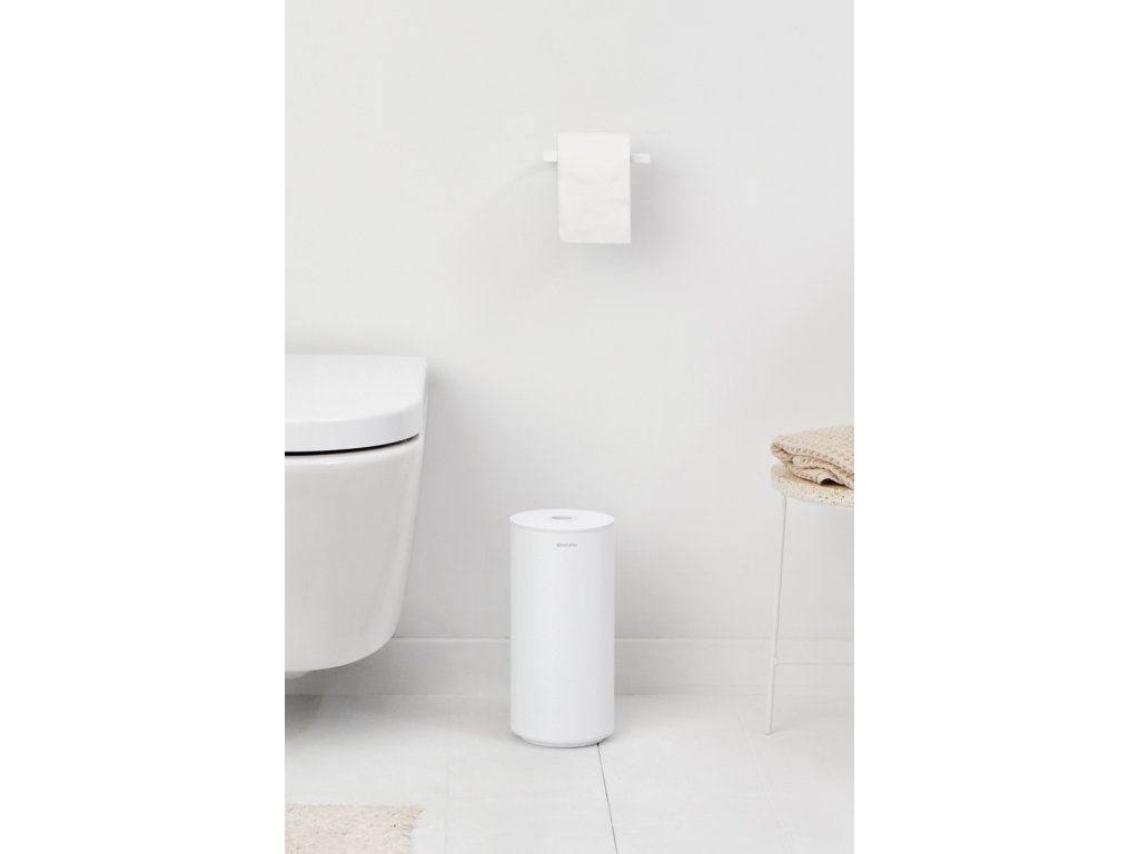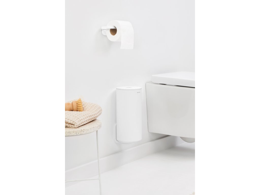 MINDSET Stojan na toaletní papír bílé barvy kolekce koupelnových doplňků MINDSET od Brabantia si zachová svůj krásný design i ve vlhkém prostředí - je vyrobena z antikorozního materiálu.