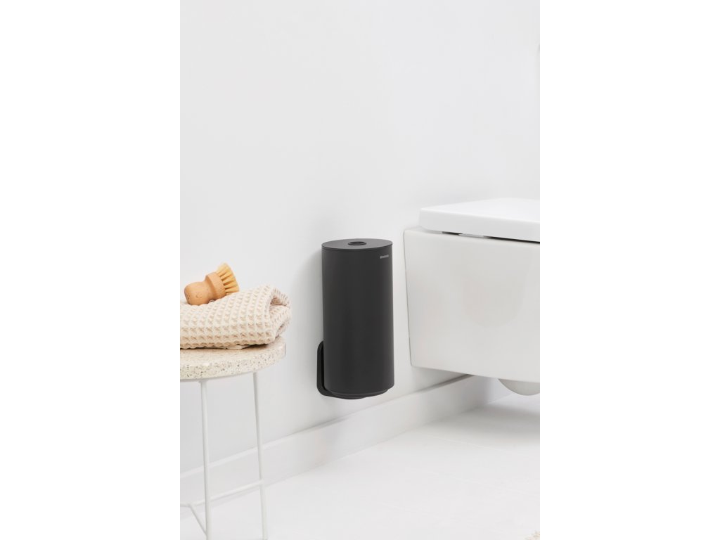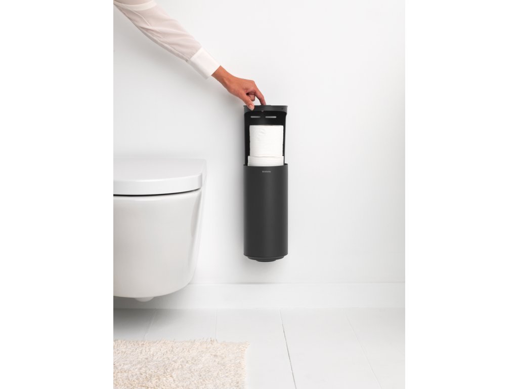 MINDSET Stojan na toaletní papír minerální tmavě šedé barvy kolekce koupelnových doplňků MINDSET od Brabantia si zachová svůj krásný design i ve vlhkém prostředí - je vyrobena z antikorozního materiálu.