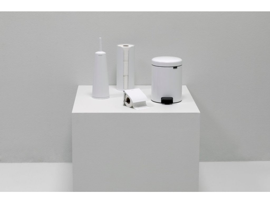 RENEW Stylový držák toaletního papíru bílé barvy z odolné nerezové oceli a plastu z kolekce koupelnových doplňků RENEW od Brabantia. Chrání toaletní papír před prachem. Držák jednoduše připevníte na zeď pomocí přiložených šroubů nebo oboustranné pásky. Součástí balení je návod na namontování, šrouby a oboustranná páska.