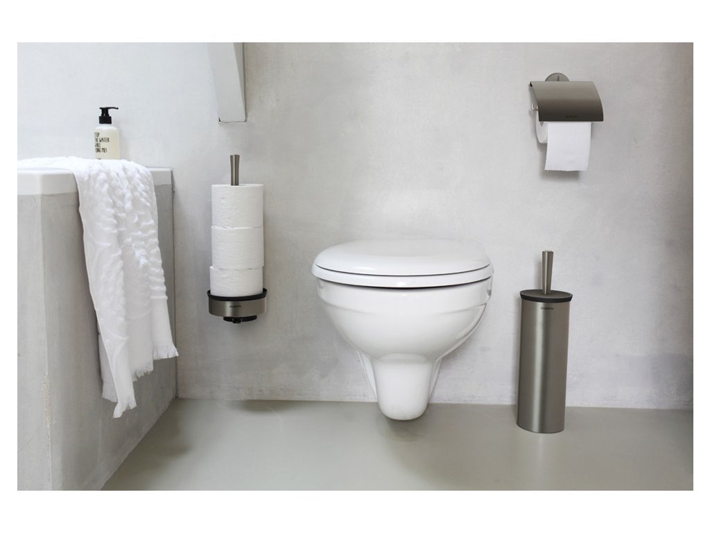 PROFILE Stojan na toaletní papír z odolné nerezové oceli v platinové barvě z kolekce koupelnových doplňků PROFILE od Brabantia si zachová svůj krásný design i ve vlhkém prostředí - je vyrobena z antikorozního materiálu.