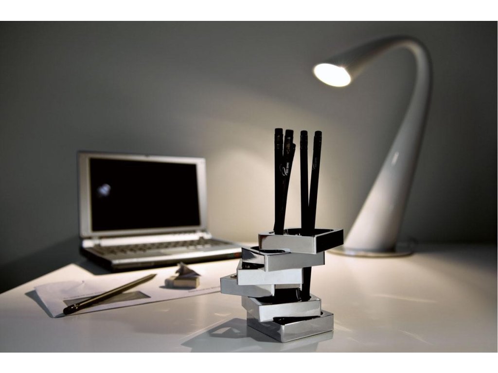 Stojan na pera a tužky ZICK ZACK je pastvou pro oči na každém pracovním stole. Tento praktický pomocník nejen skvěle vypadá, ale také velmi pragmaticky pomáhá při hledání toho správného pera, tužky nebo propisky. Protože se ZICK ZACK skládá z pohyblivých čtverců, které lze otáčet kolem vlastní osy. Sametová noha také zajišťuje měkký vzhled.
