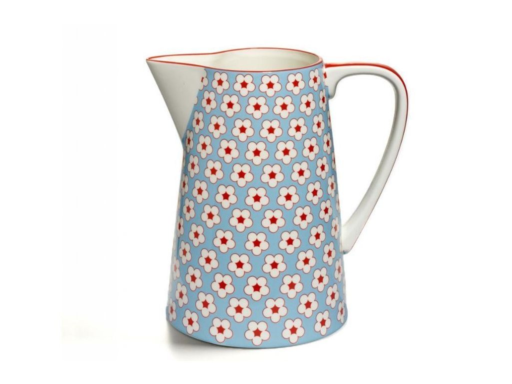 Krásný květinový porcelánový džbán o velkém objemu 3,5 l a výšky 24,5 cm v moderním světle modrém designu z úžasné kolekce porcelánu COTTON BUD.