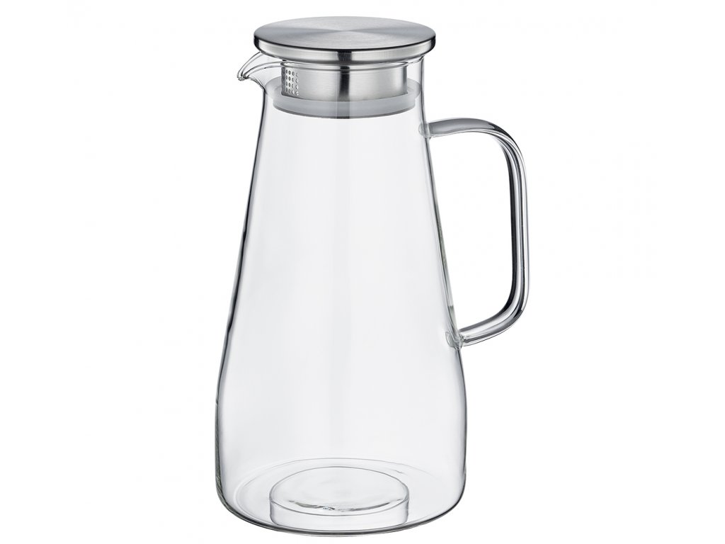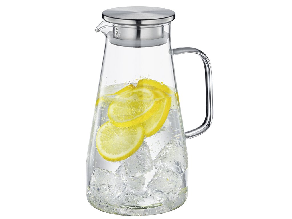 Skleněný džbán na nápoje EMILIA o objemu 1,6 l s nerezovým víčkem a gumovým těsněním..