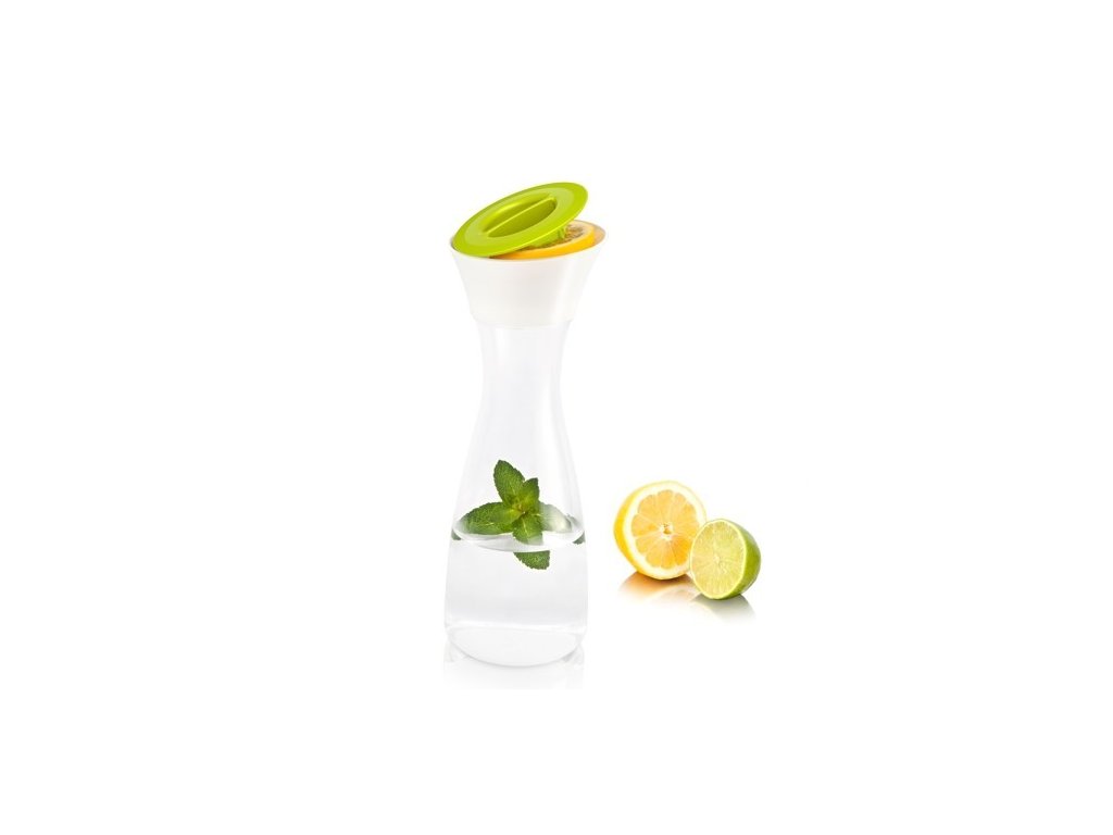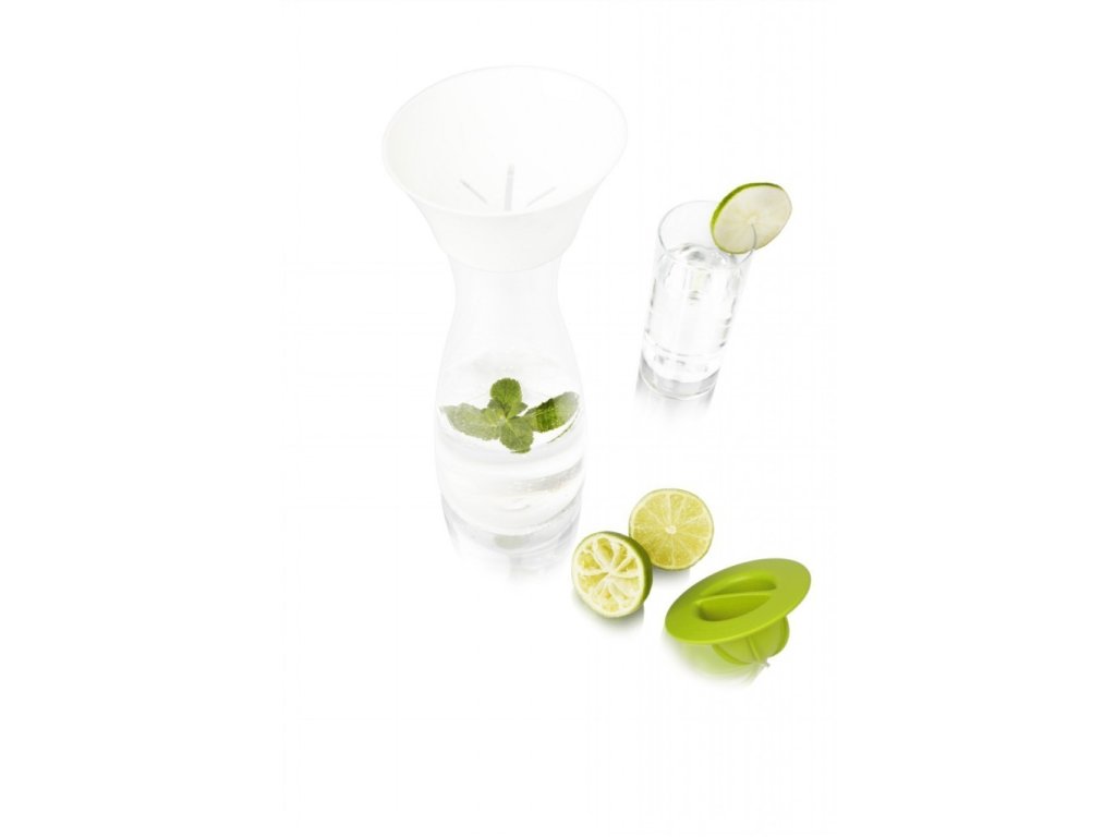 Skleněná karafa holandské firmy Vacu Vin se doma stane nepostradatelným pomocníkem. Karafa z akrylátu o objemu 1 litr je určena na skladování vody nebo jiného nápoje. V horkých dnech vám jistě přijde vhod lis na citrusové plody, který je přímo integrován ve víčku. Lis je možné používat i samostatně. Všechny části je možné umýt v myčce nádobí.